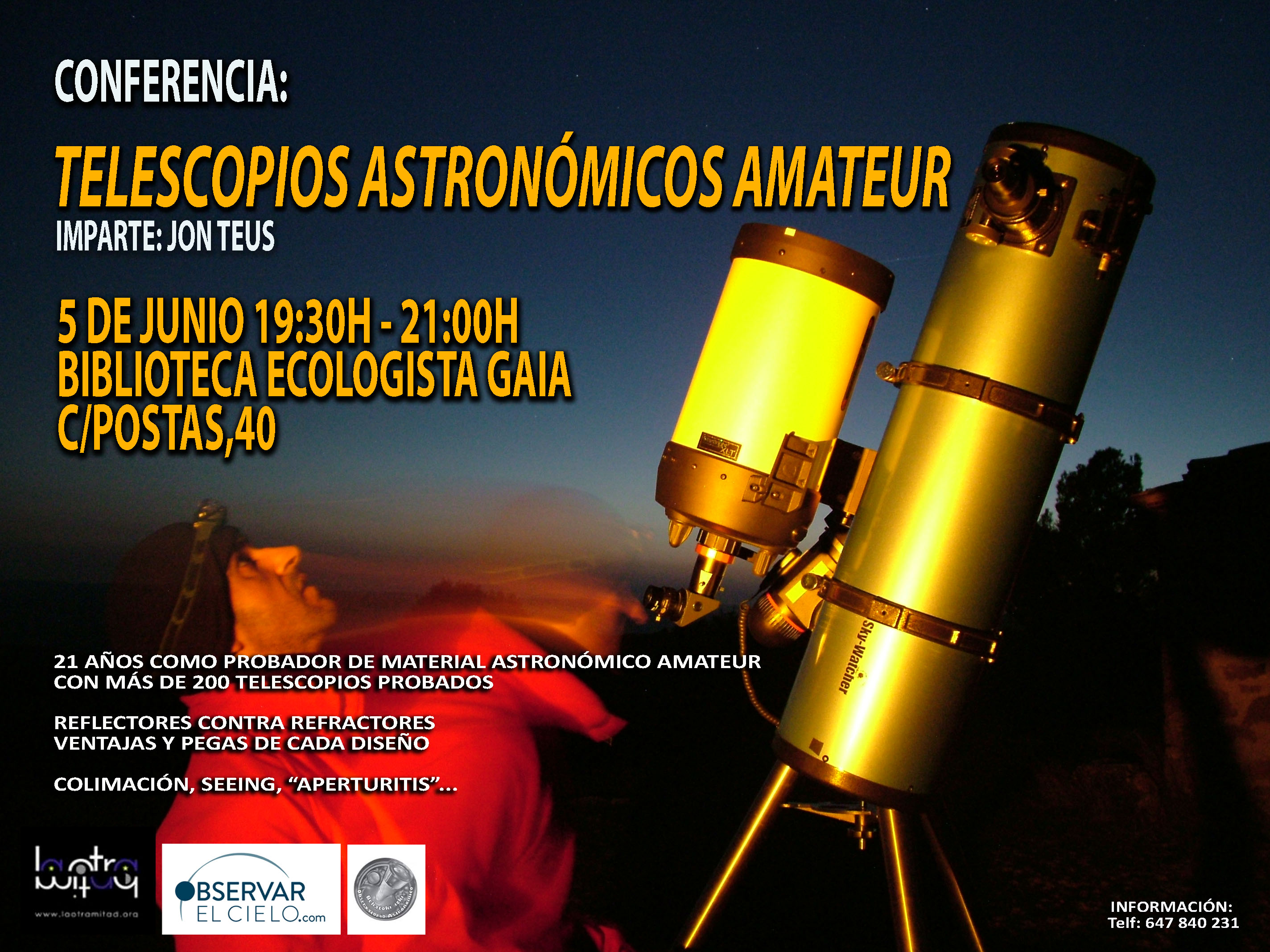 El próximo jueves 5 de junio tendremos la suerte de contar con la presencia de nuestro gran amigo Jon Teus. Jon es un experto en telescopios. Ha probado centenares de ellos, y desde luego, no conocemos a nadie con más rigor y criterio para hablar de este tema.