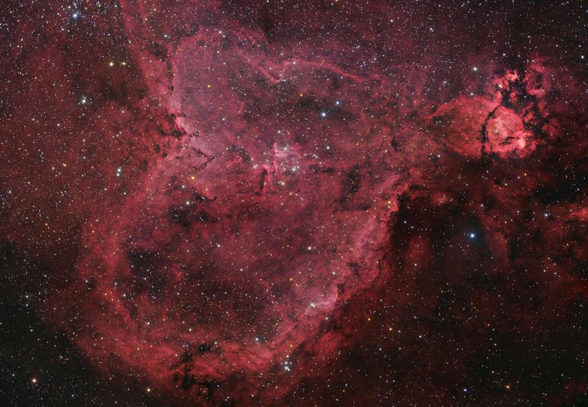 Para ilustrar como afecta la contaminación lumínica vamos a comparar dos fotos del mismo objeto, la nebulosa IC 1805 también llamada nebulosa del corazón.
