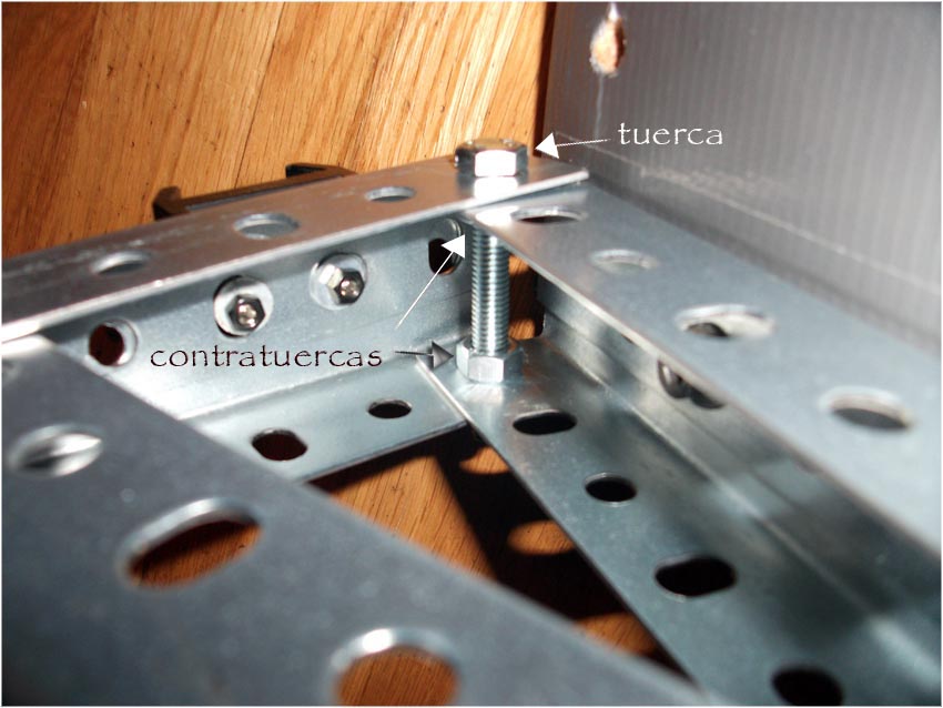 La construcción del “parato” es bastante sencilla. He utilizado un ángulo de montaje que he cortado para hacer un triángulo isósceles con 28º. Medidas de 25-25-11. Está unido con tornillos pasantes y contratuercas para dar más firmeza al montaje.