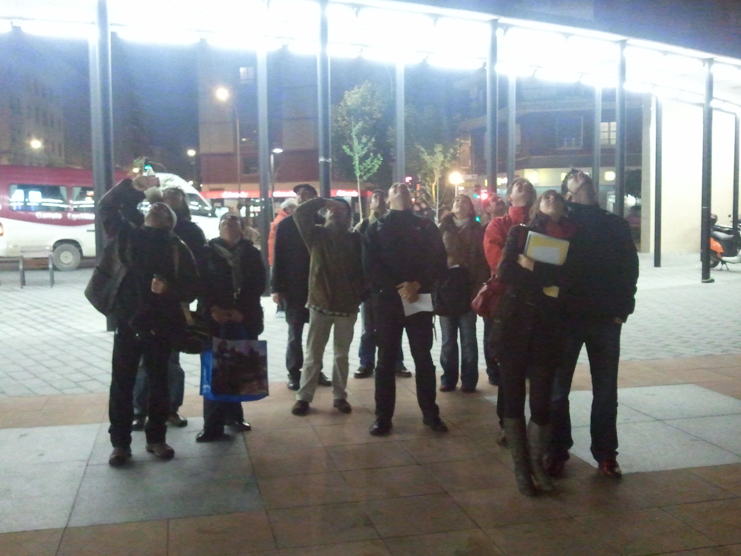 Gracias a páginas web como: Heavens above (www.heavens-above.com/) podemos hacer predicciones de paso para nuestra localización geográfica concreta con suficiente antelación. Cosa que hizo Julio, y gracias a ello pudimos observar, entre nubes, su paso desde la misma plaza del Centro Cívico de Iparralde