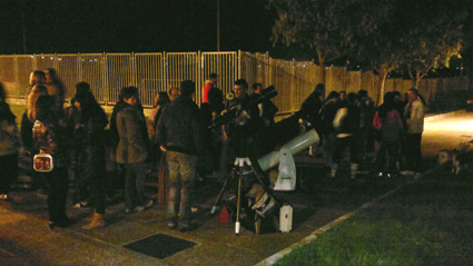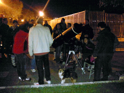 Laotramitad habíamos llevado un par de telescopios al que se sumó el dobson de 200mm de Toño, vecino de Abetxuko. Tuvimos un ambiente muy majo y las personas que asistieron pudieron contemplar al planeta y las lunas Titán, Tetys, Rhea y Dione (estas últimas muy cerca de Saturno).