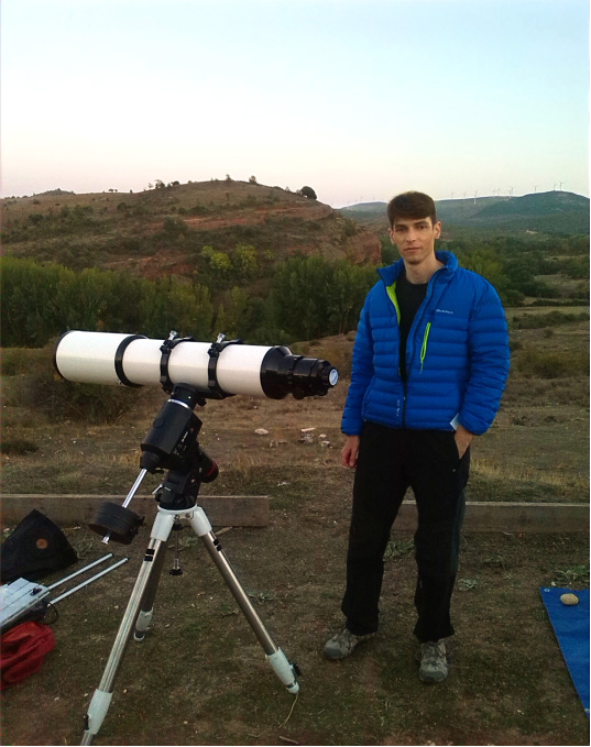 Decidimos montar el telescopio con mucho cuidado y Óscar va a por unos bocadillos calientes y cervecitas , pero antes las fotos de rigor…aqui junto al triplete ruso de 152mm sobre la montura Eq6 que nos dejaron muy amablemente ¡gracias Julio! .. para próximas salidas este asunto se resolverá felizmente con una montura gotorizada con game pad. ¡ que ganas ya! Oscar jura que jamás dejará la observación visual y no caerá en lo de astrofoto, (solo paisaje nocturno y planetaria :-P)