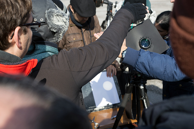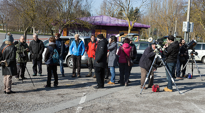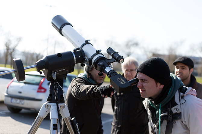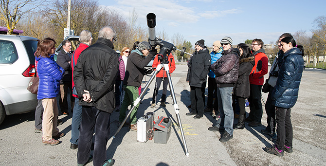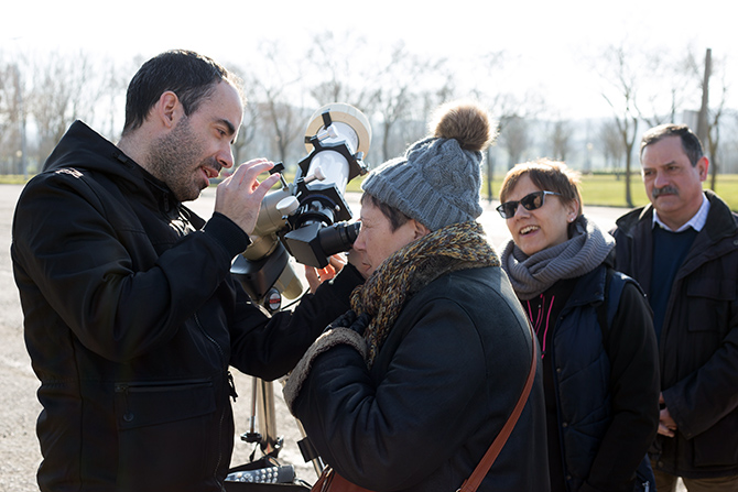 También llevamos unos prismáticos e improvisamos in situ un taller para realizar una observación solar segura por el método de proyección