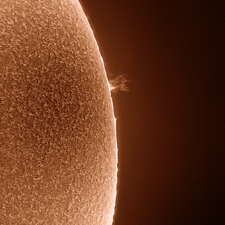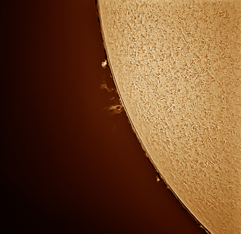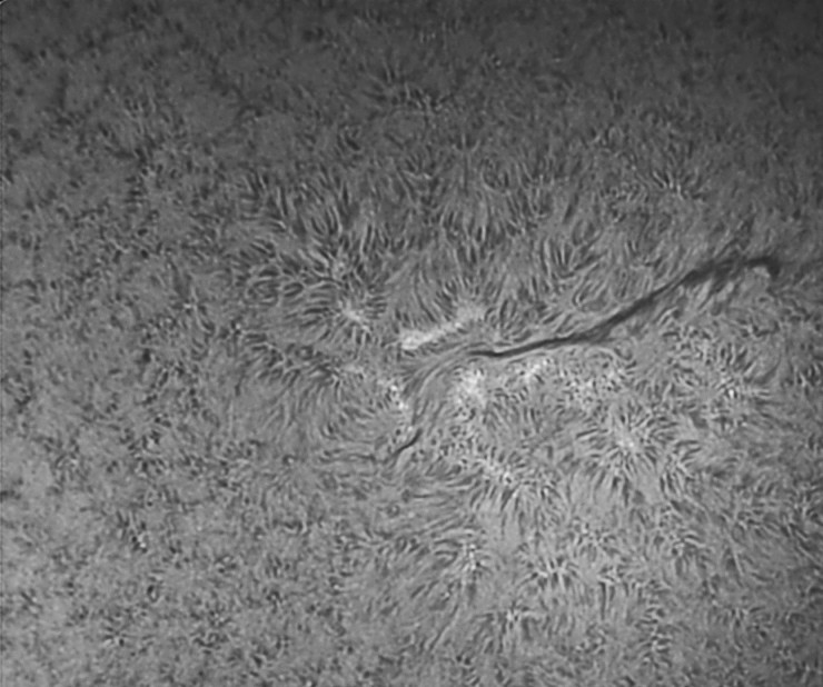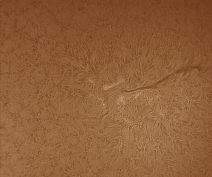 Me acuerdo hace mucho tiempo, yo tenía 17 años e iba a casa de mi gran amigo y maestro Miguel Elvira, que me envenenó con ese sol que ponía él en su “observatorio”, un sol por proyección de 2 metros de diámetro y nos quedábamos mirándolo durante horas, siempre me ha gustado la astronomía solar, pero los precios de los filtros H-alfa siempre han estado fuera de mi alcance. Ahora gracias a mi amigo Julio Corredera que me ha dejado un coronado de 40 modificado estoy haciendo unas pruebas de fotografía solar y aquí pongo esas primeras pruebas. Estoy aprendiendo a hacer tomas y procesado solar, así que espero ir mejorando y que os gusten.