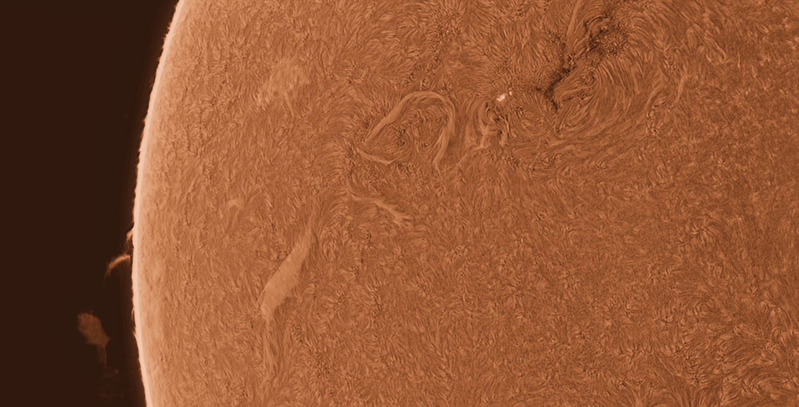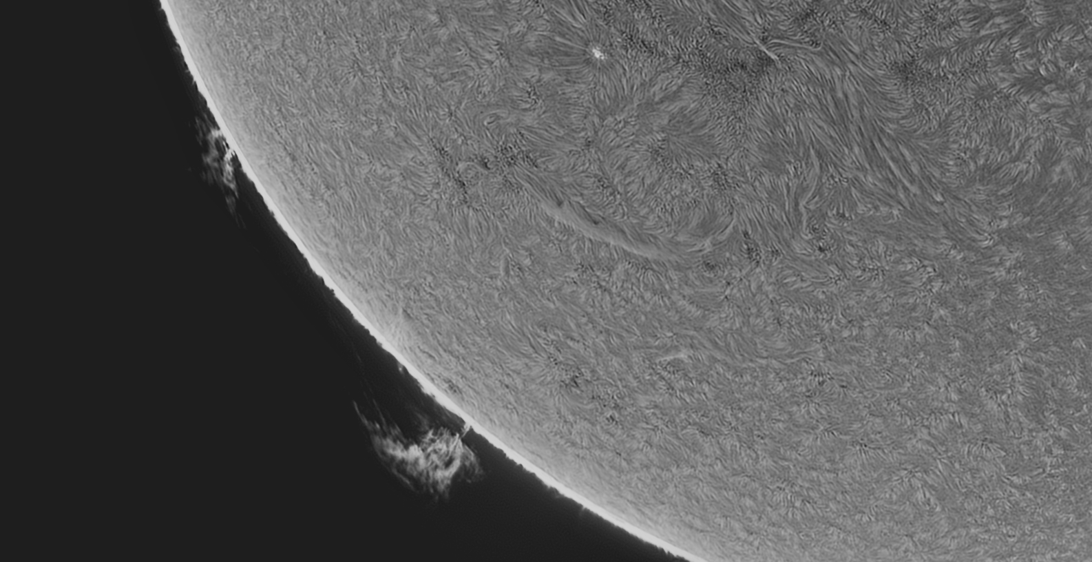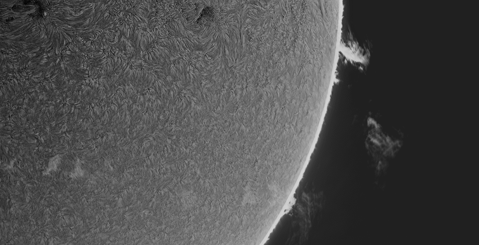 ¿Por qué este cambio? bueno, uno siempre aspira a superar lo que ya ha hecho y eso era lo que quería. Para empezar el tamaño del píxel es mucho mayor: 9um frente a 3,75 um de la ASI 120 MM, esto es muy adecuado cuando trabajas con focales muy altas como yo que ando sobre f30. Es la que se suele usar para fotografía solar de alto detalle, porque con ese tamaño de pixel la cámara es mucho más sensible a la luz para poder trabajar en H-alfa; que es una franja de luz muy restrictiva y oscura. Esto me permite sacar la cromosfera y las protuberancias a la vez cosa que la ASI 120 no, y tenía que sacar por separado y luego hacer montaje. Ahora no.
